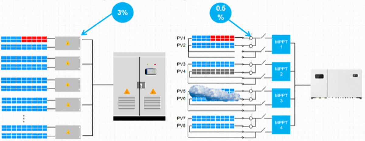 A Huawei inverterek fejlesztő mérnökei karöltve a világ vezető generál kivitelező (EPC) cégeivel arra a következtetésre jutottak, hogy a sztring inverterek sokkal előnyösebb megoldással bírnak, mint a centrál inverterek. Erre a következtetésre nem csak elméleti (labor), hanem gyakorlati (telepített napelemes rendszerek) tapasztalatok alapján jutottak.
