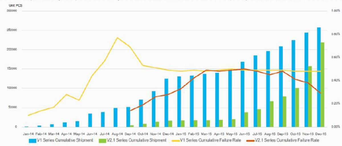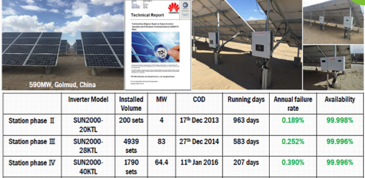 Az adatokat a TÜV is alátámasztotta saját méréseivel, amelyet az 590 MW-os, kínai Golmudban kivitelezett rendszeren végeztek. A legpéldásabb eredményt a 20 kw-os inverterre adták, amelyek meghibásodási aránya nem haladta meg a 0,189 %-os arányt!