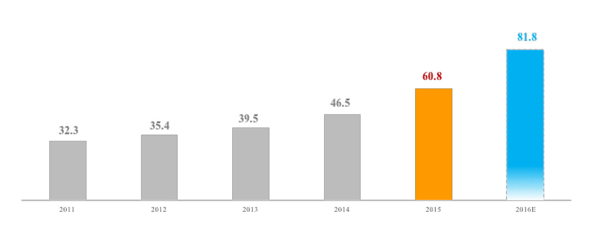 Az innovációnak köszönhetően a cég töretlenül fejlődik, növekszik. Ezt a tényt a számok is bozonyítják: 2015-ben az éves értékesítési volumen elérte a hihetetlen 60,3 milliárd USD-t!
