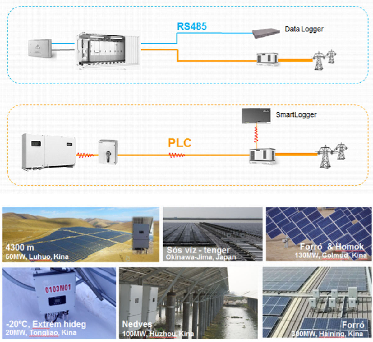 A Huawei inverterek esetében teljesen mellőzhető az RS485-ös adatkommunikáció, helyette a sokkal pontosabb, innovatív PLC kommunikáció kerül alkalmazása, amely még költséghatékonyabb megoldás is.