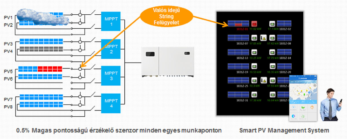 A felhő alapú monitoring rendszerének köszönhetően a napelemes erőművek sokkal átláthatóbbak, a meghibásodások gyorsabban felfedezhetők, illetve gyorsabban elharíthatóak.